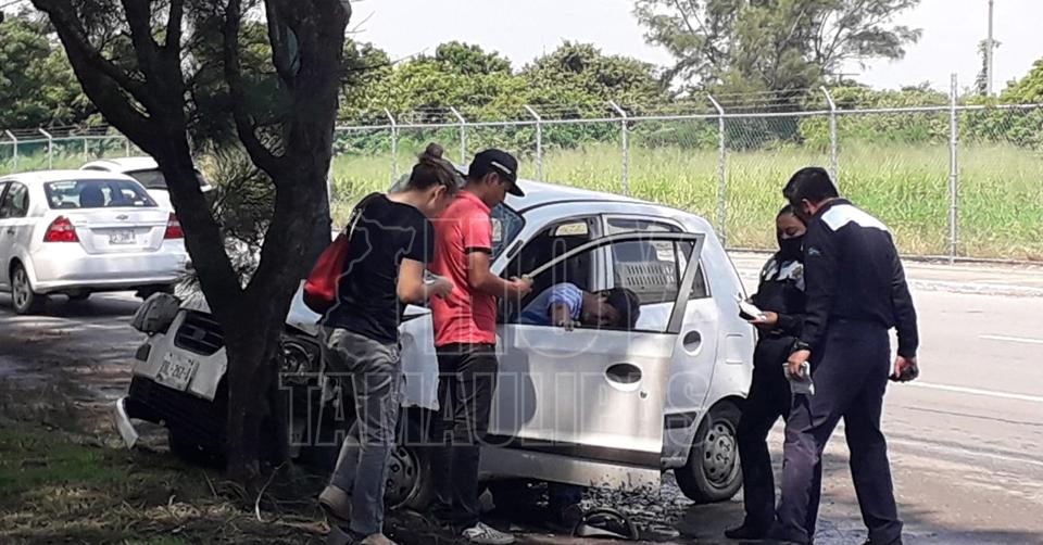 Perdió el control de su auto y se estampó con un pino en Tampico