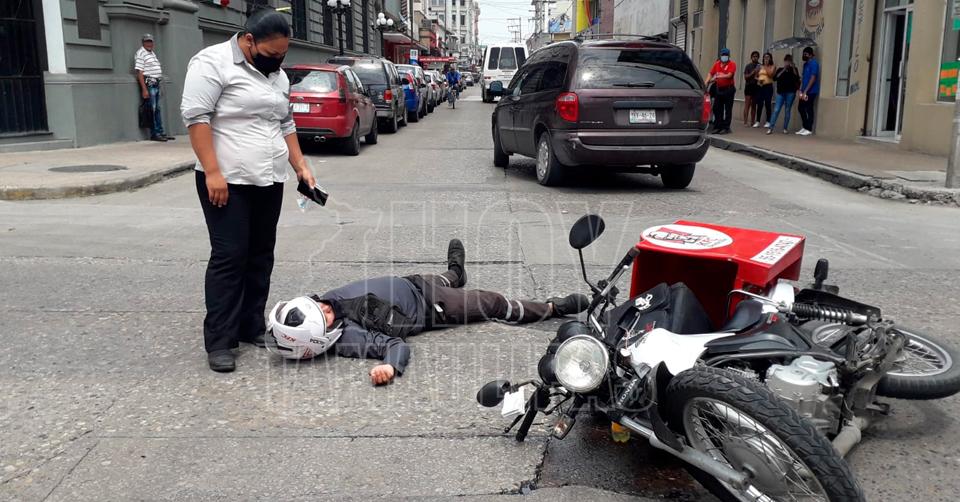 Repartidor de KFC choca contra carro en el centro de Tampico