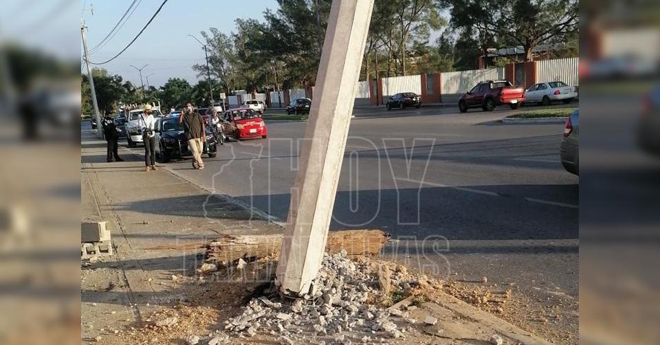 Tumba poste y barda frente a la UAT en Tampico y huye