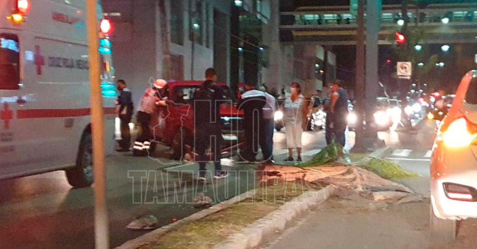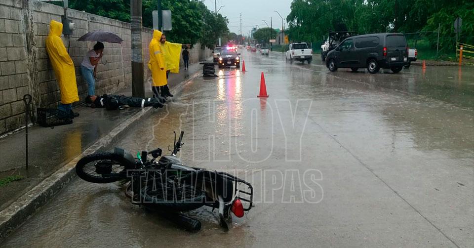Motociclista casi muere al caer rollo de cable de camión en Tampico