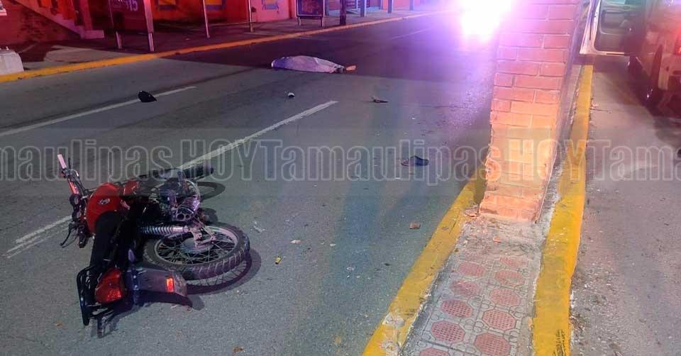 Muere joven al estrellar su moto contra poste y puente peatonal en Tampico