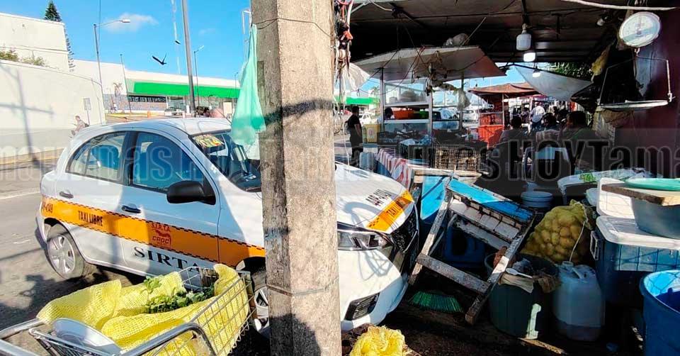 Taxi fue impactado por automóvil y proyectado contra puesto de tortas en Tampico