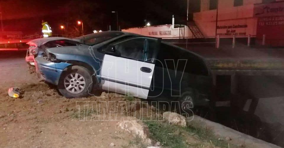Inexperto conductor cae a canal en Divisoria de Tampico y Altamira