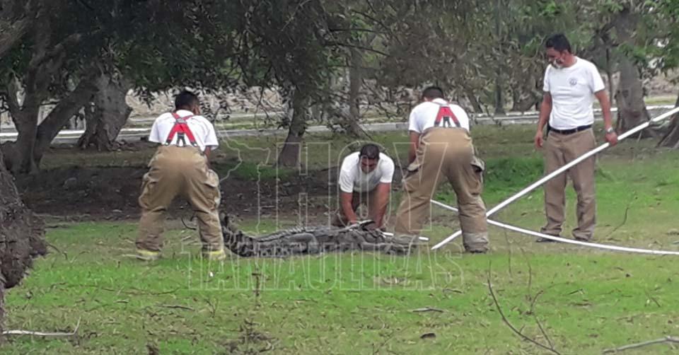 Capturan a enorme cocodrilo que se dirigía a una vialidad en Tampico