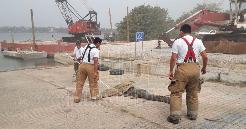 Capturan cocodrilo que deambulaba por el Bulevar Perimetral de Tampico