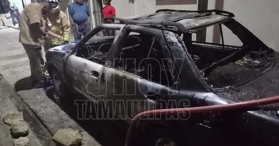 Carro queda calcinado al incendiarse en el centro de Tampico