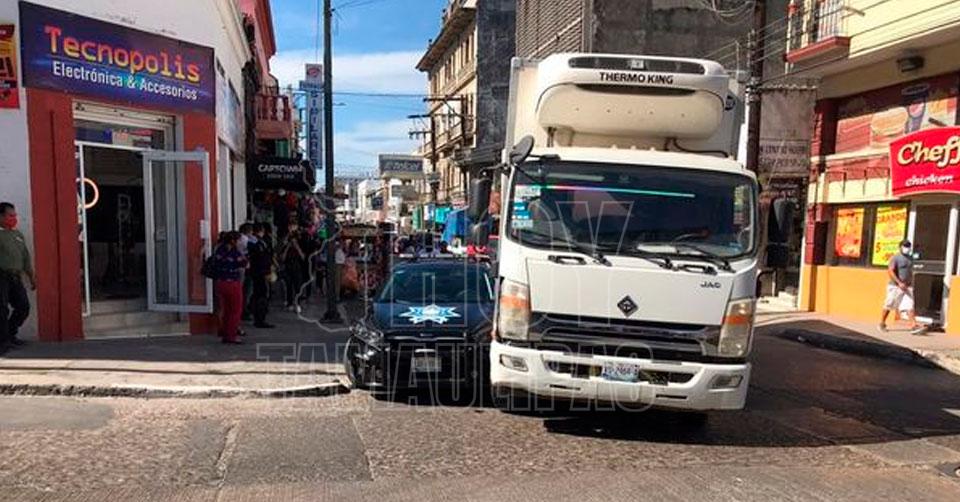 Camión repartidor impacta patrulla de Tránsito en Tampico