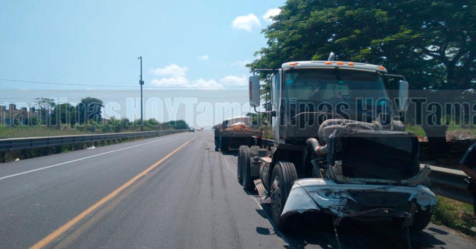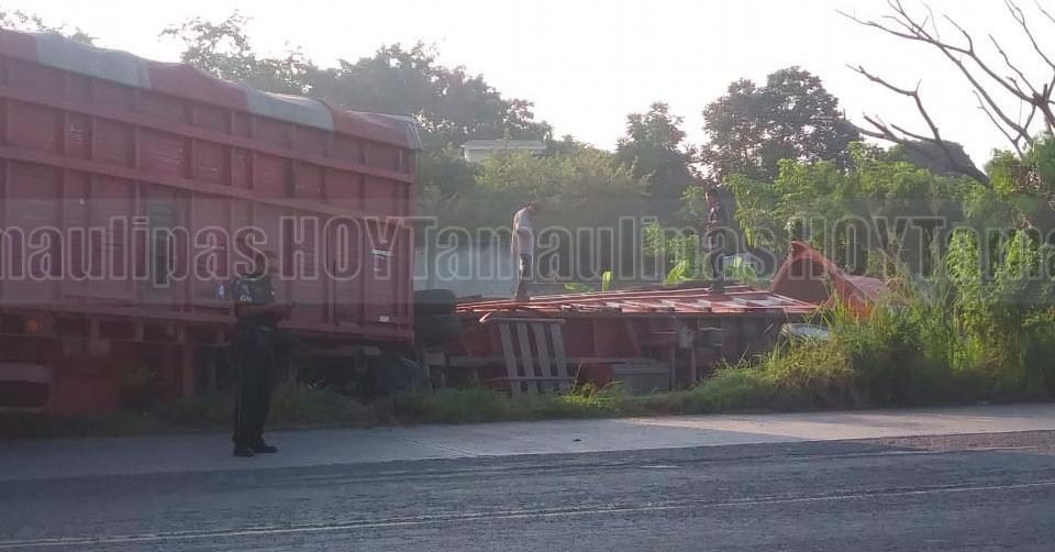 Tráiler se impacta contra barandal en el Libramiento de Tampico