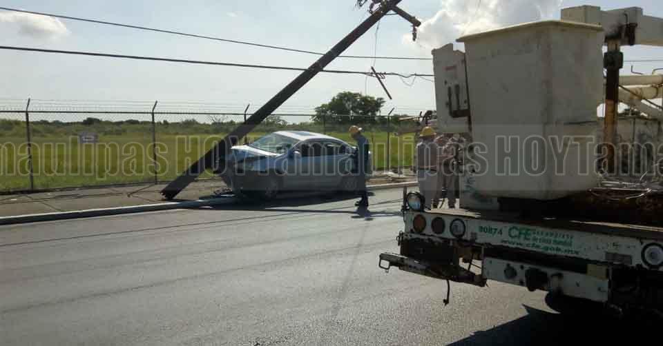 Jóvenes con carro tumban poste de la CFE en Tampico