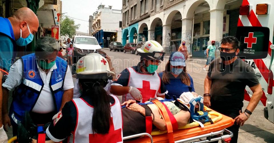 Mujer resbala en bajada hacia los mercados municipales de Tampico