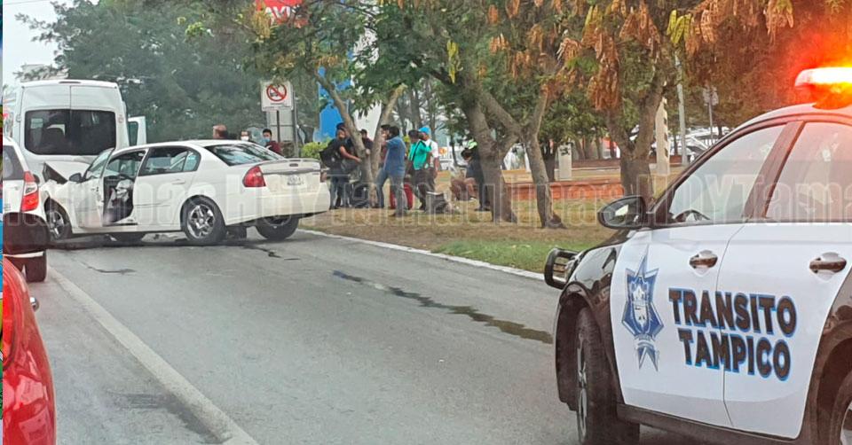Chocan tres vehículos, uno vuelca y ocupantes salen heridos en Tampico