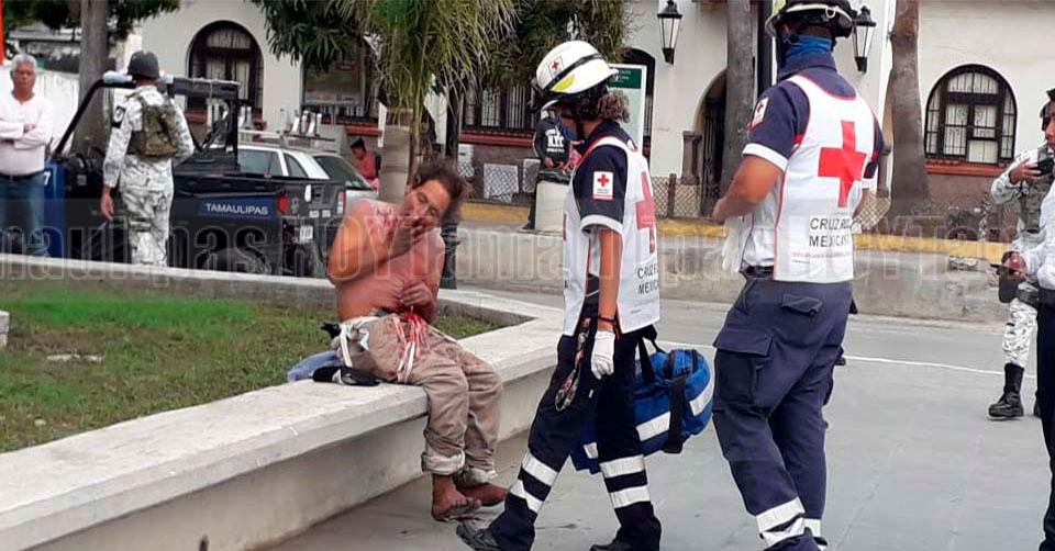 Sujeto se desgarra la piel con sus uñas en plaza de Tampico