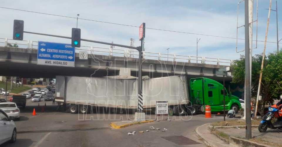 Descartan daños en puente de la avenida Valles de Tampico tras choque de tráiler