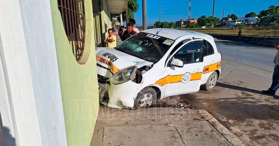 Taxista pierde el control y se estrella contra vivienda en Tampico