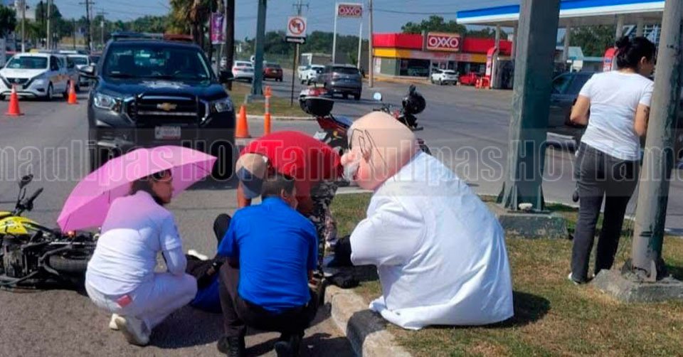 Dr. Simi llegó en apoyo de un motociclista que chocó con un camión en Tampico