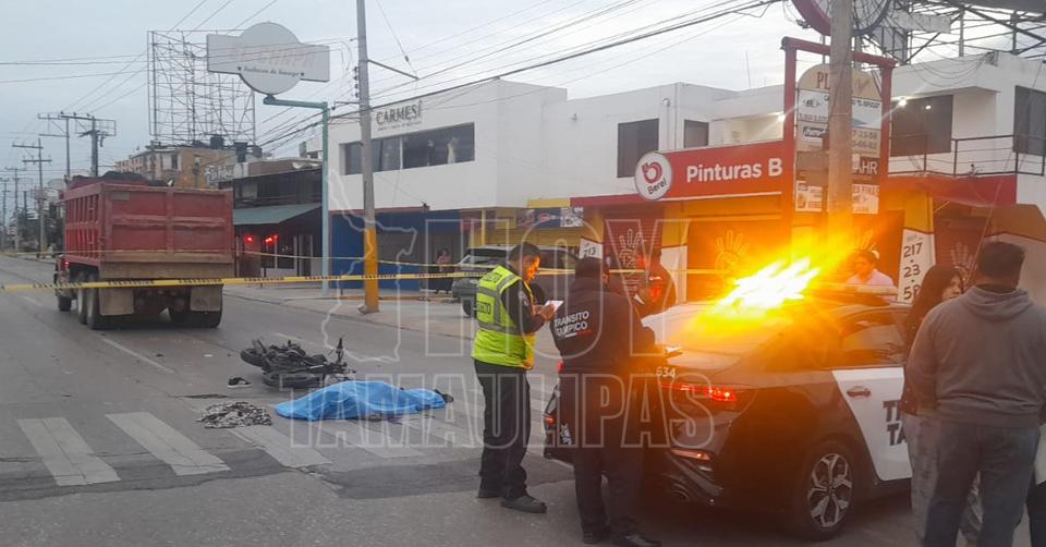 Joven motociclista perdió la vida al estrellarse con un camión de volteo en Tampico