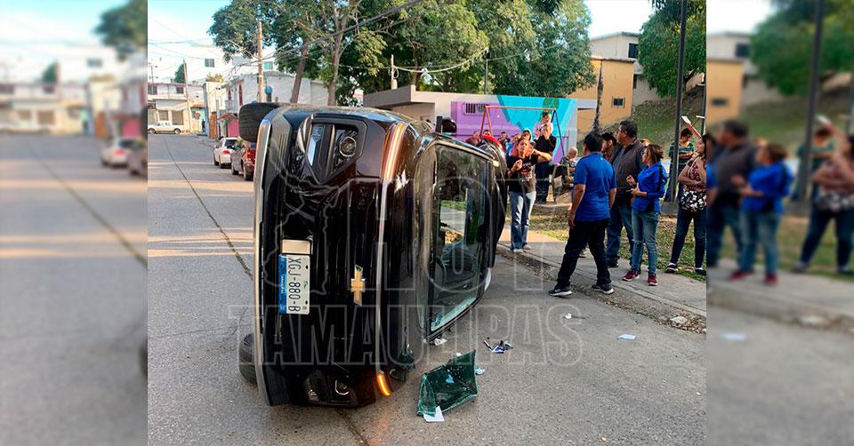 Vuelca lujosa camioneta y la abandona frente a un parque infantil de Tampico