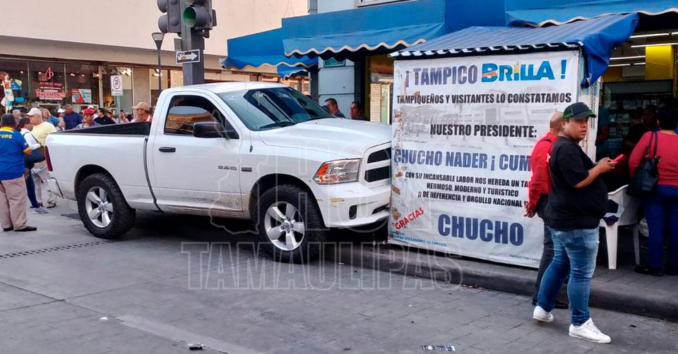 Conductor estrella su camioneta contra puesto en el Centro de Tampico