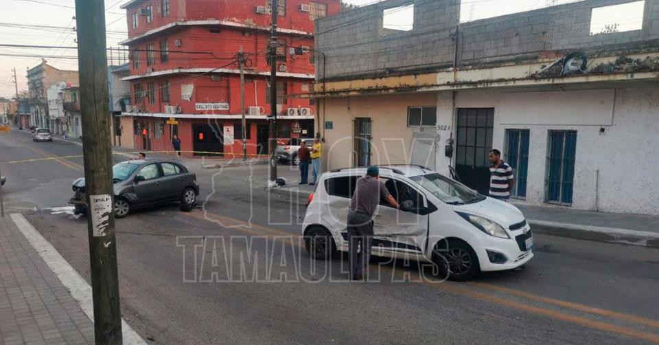 Fuerte choque entre dos automóviles en el centro de Tampico