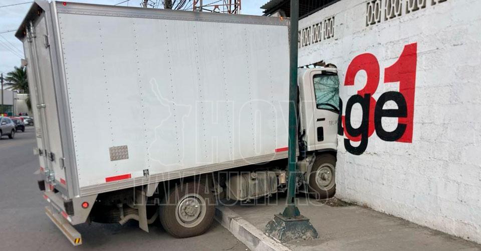 Se le bota cambio a camión y derriba barda de negocio en Tampico