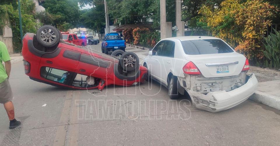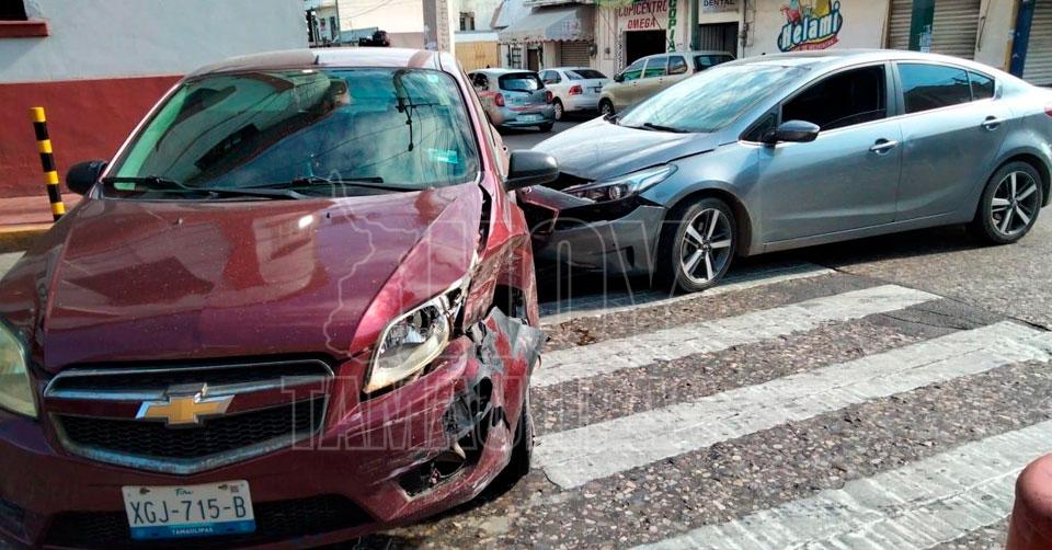 Choque deja cuantiosos daños y caos vial en el centro de Tampico