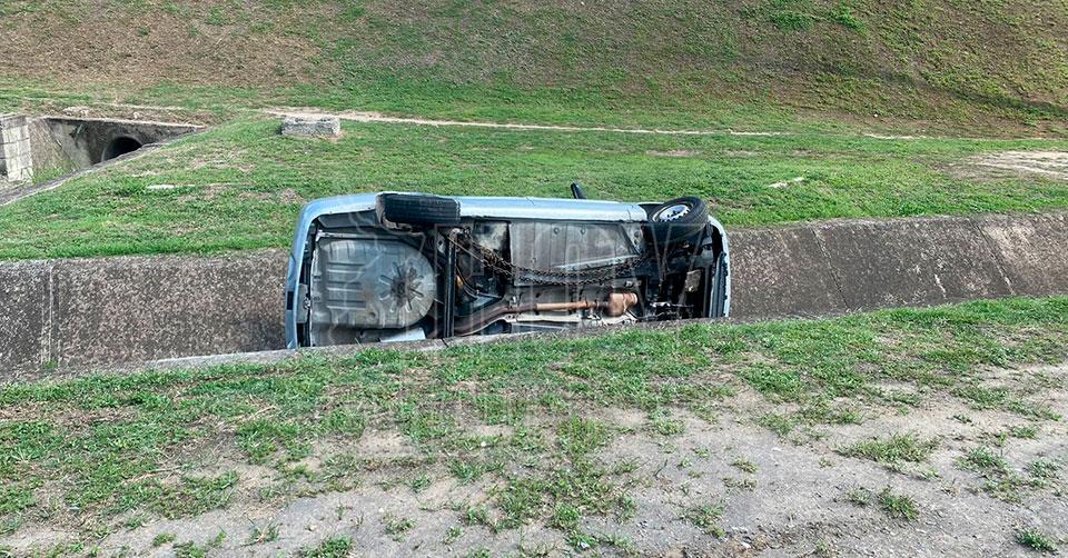 Abuelito pierde el control y cae a canal a cielo abierto en Tampico