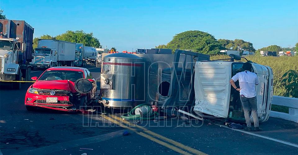 Volcadura en Libramiento Poniente de Tampico deja un lesionado