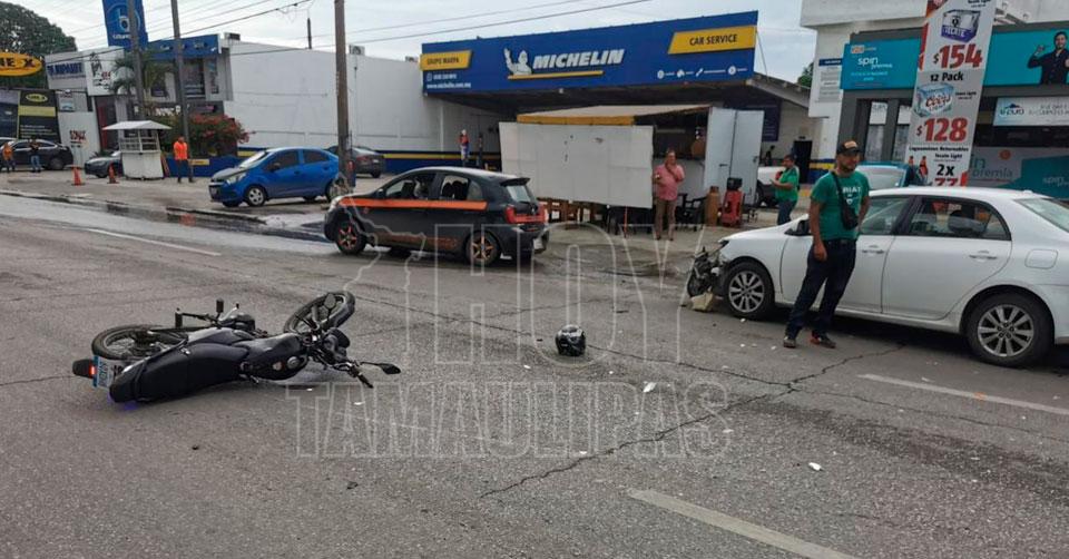 Motociclista resulta lesionado tras chocar contra un automóvil en Tampico