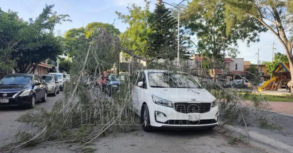 Salió de la iglesia y le cae árbol encima de su camioneta en Tampico