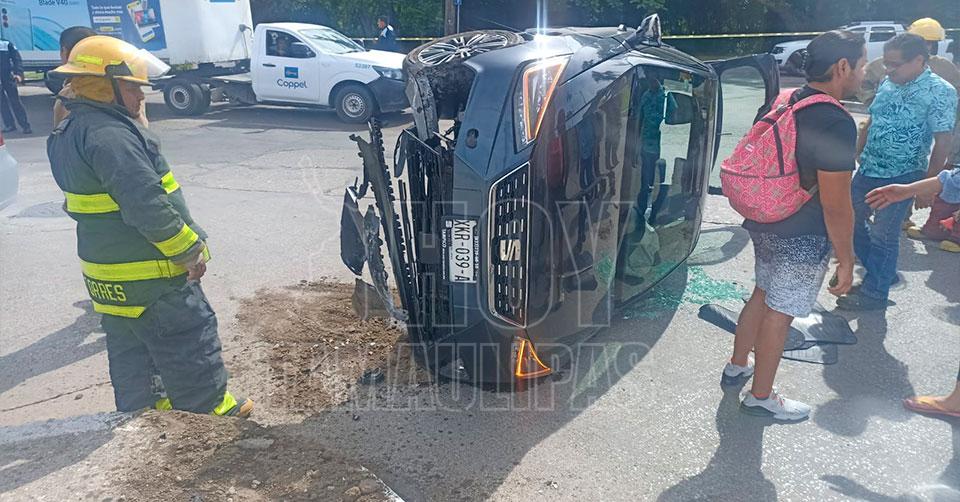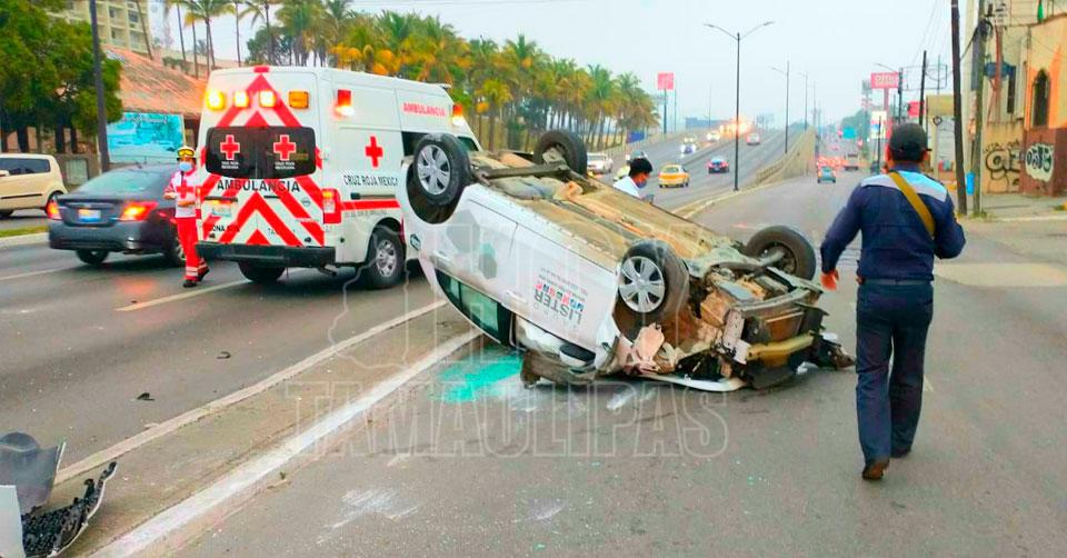 Volcadura en bulevar de Tampico dejó a una joven lesionada