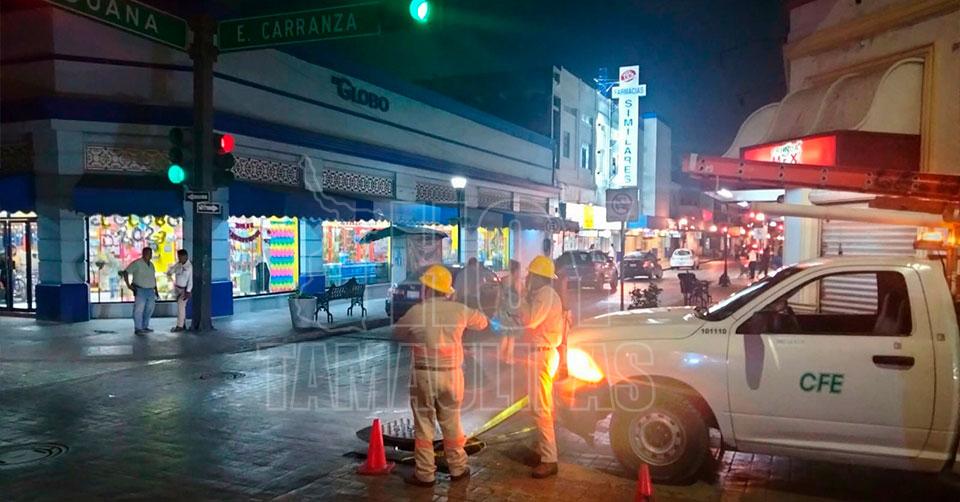 Explosión subterránea en el Centro de Tampico deja sin luz eléctrica negocios