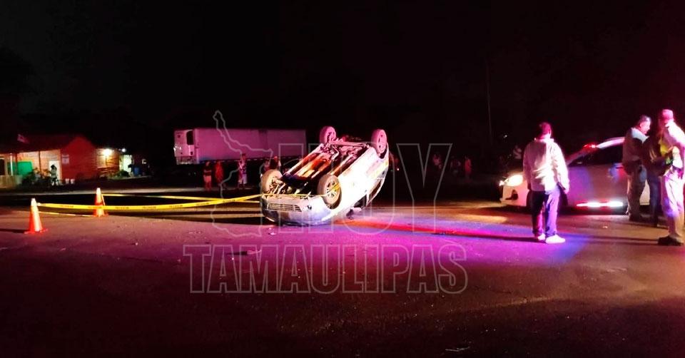 Dos heridos en aparatosa volcadura de un taxi en Tampico