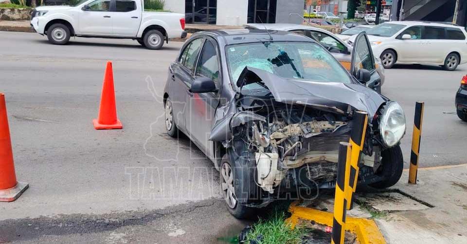 Auto compacto terminó proyectado contra base de un semáforo al chocar con Audi en Tampico