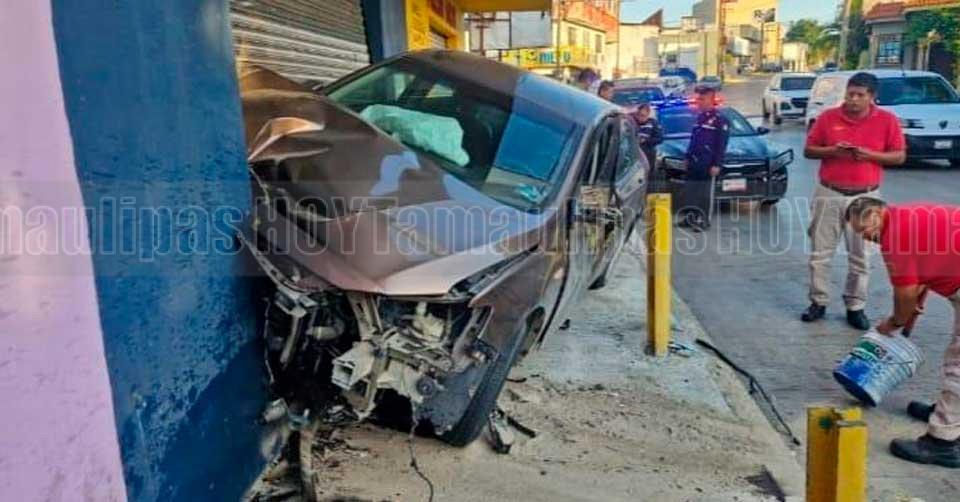 Destrozó su automóvil al estrellarse contra un negocio en Tampico
