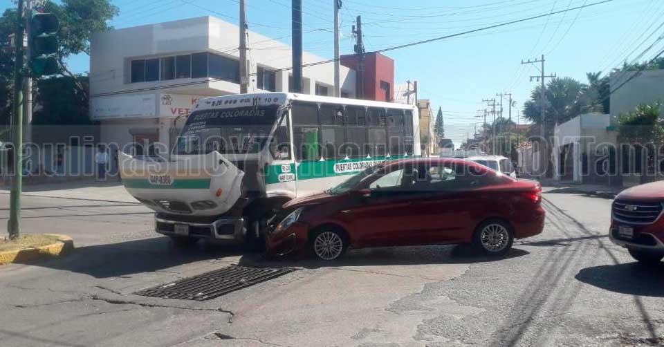 Choque entre un microbús y un carro particular en Tampico dejó daños materiales