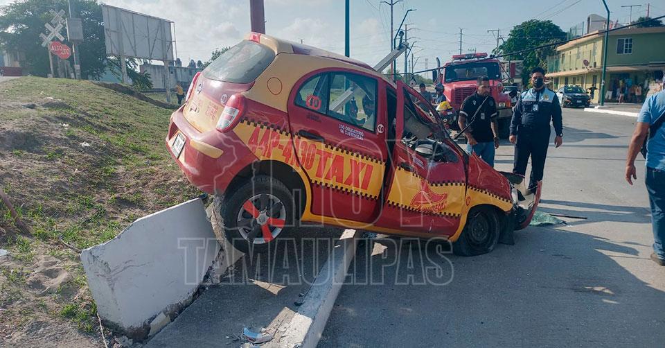 Ebrio taxista casi se mata tras fuerte choque y volcadura en Tampico