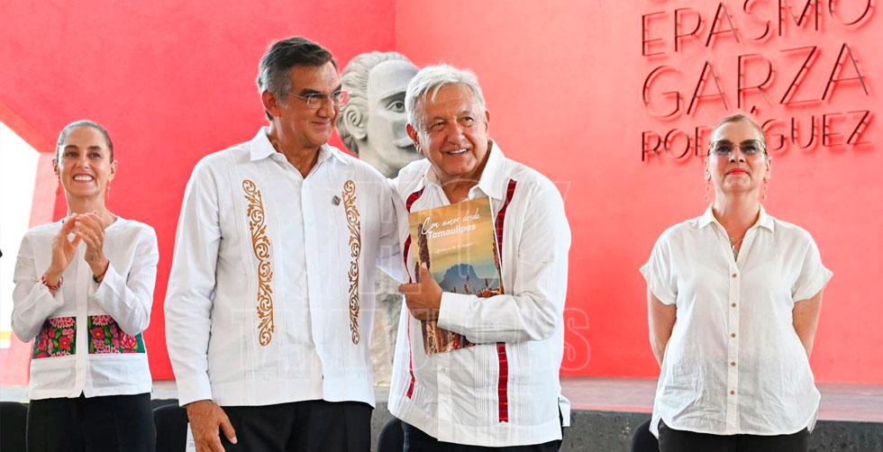 Entre gritos de “Dictador” AMLO rinde homenaje a Catarino Garza en Matamoros
