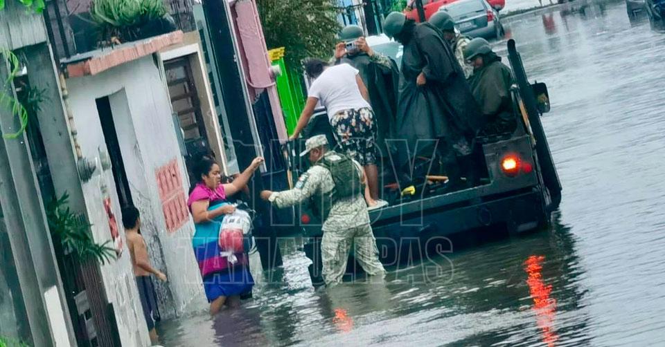 Auxilian militares a mujer en labor de parto durante inundaciones en Matamoros