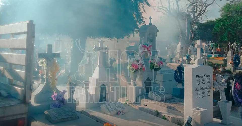 Limpian y fumigan panteones de Matamoros para recibir a visitantes en Día de Muertos