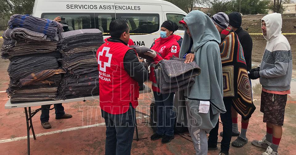 Entrega la Cruz Roja cobertores a migrantes en Matamoros