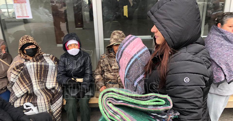 Llevan cobijas a abuelitos de Matamoros que esperaban el pago de su pensión