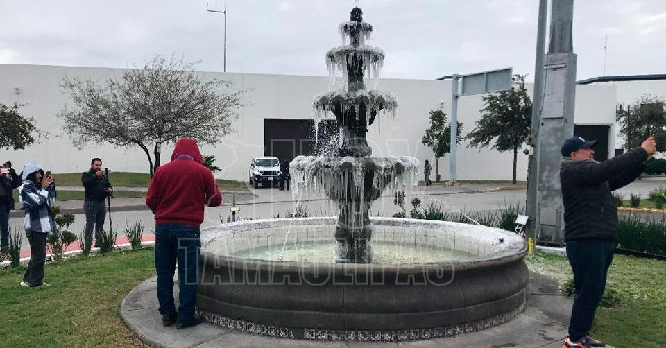 Se congela agua de fuente en Matamoros y se vuelve un atractivo