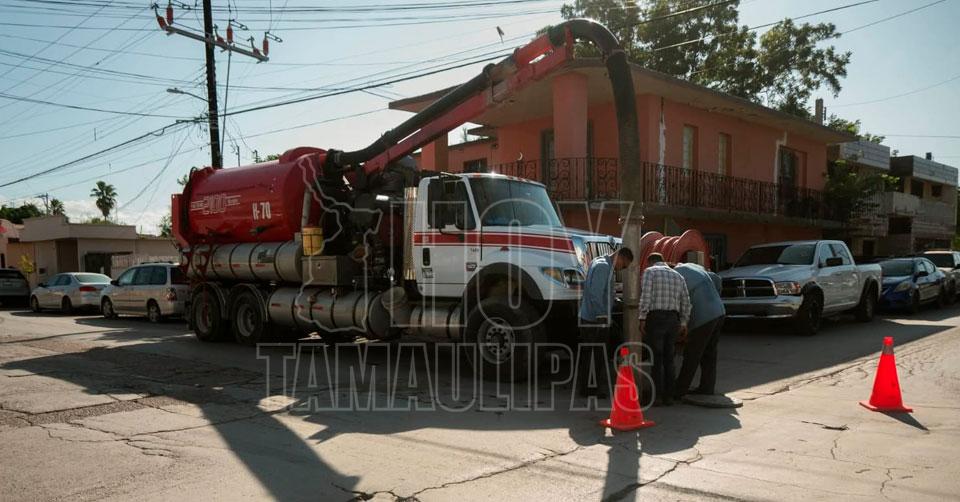 Avanzan trabajos de mantenimiento en drenaje sanitario del centro de Matamoros