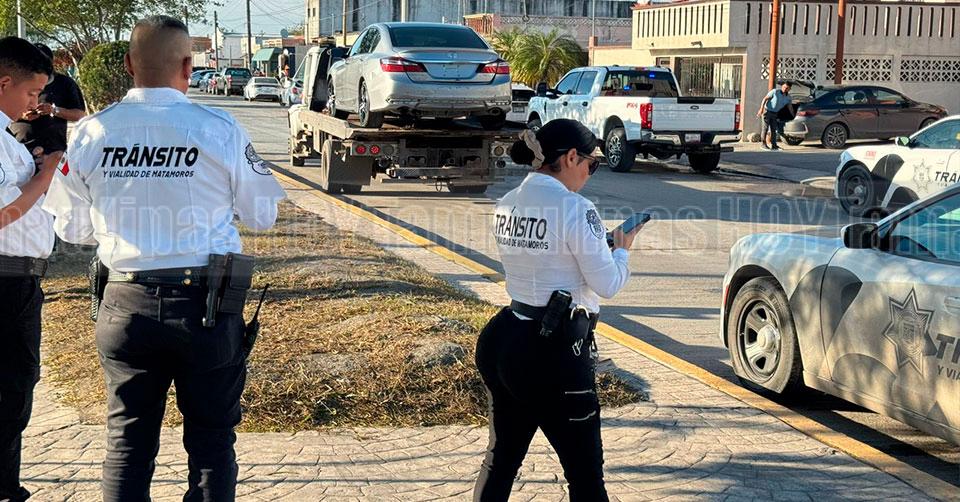 Tránsito pone freno a autos mal estacionados frente a gimnasio de Matamoros, se llevan seis