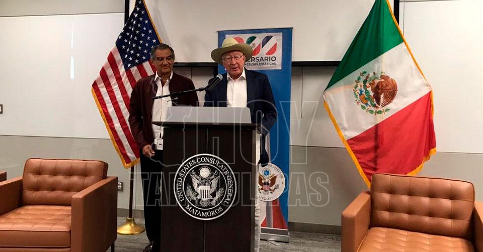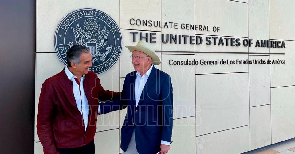 Fortalecen Américo y Ken Salazar coordinación entre Tamaulipas y EU