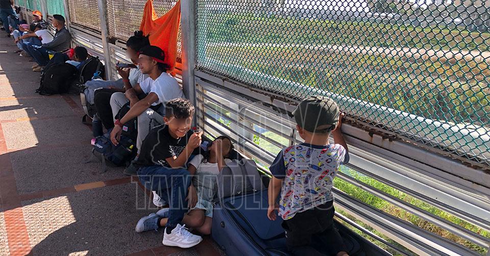Migrantes duermen arriba del Puente Nuevo en Matamoros, en espera de poder cruzar a EU