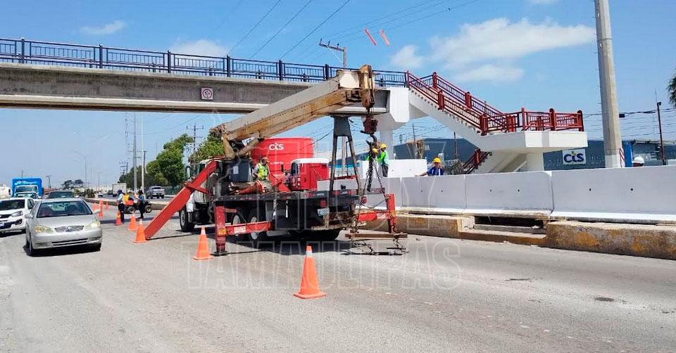 Colocan barreras de contención debajo de puente peatonal en Matamoros
