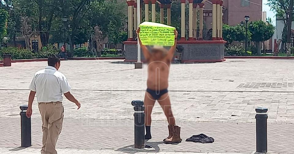 Hombre baila semidesnudo contra la corrupción frente a la Presidencia de Matamoros