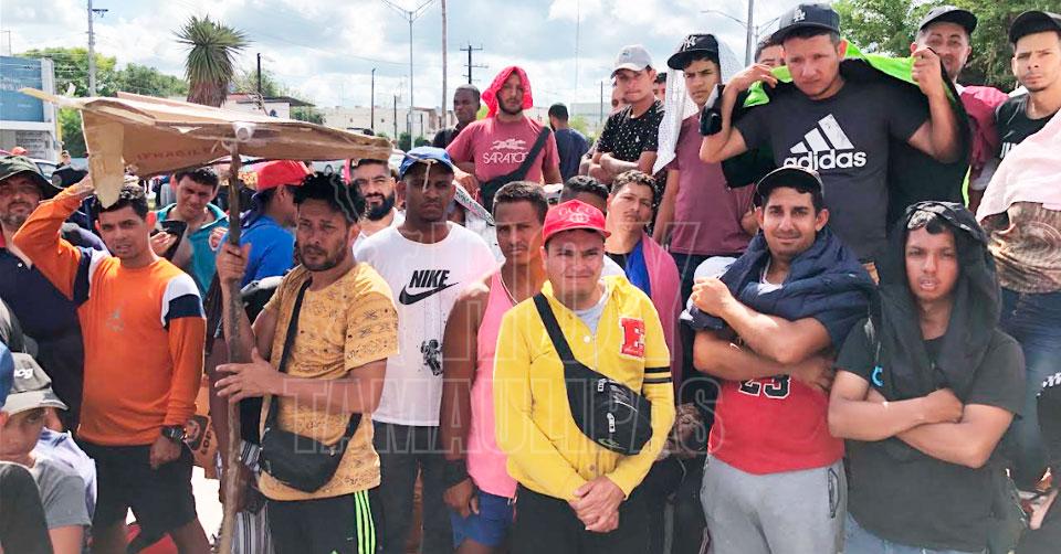 A la intemperie y aguantando temperaturas con sensación de 40° siguen llegando migrantes a Matamoros