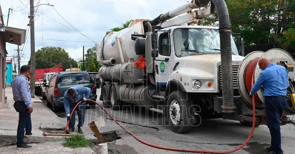 Gobierno de Matamoros limpia líneas de drenaje en calle 4a y Argüelles